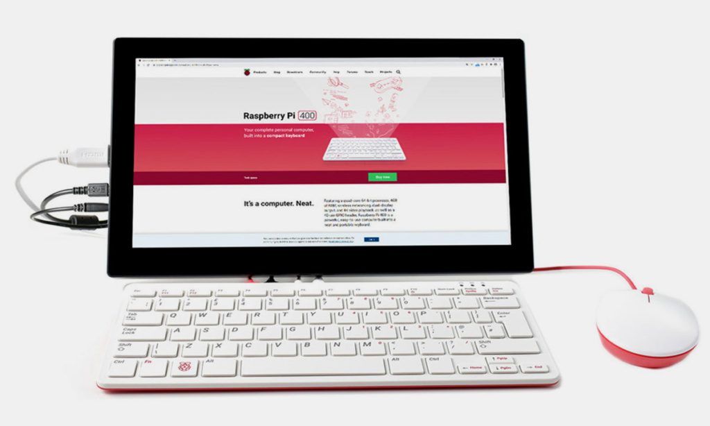 Estuvimos buscando mucho tiempo un compu sencillo y práctico para conectarlo a una pantalla que tenemos en la oficina y nos encantó ver que Raspberry ofrece desde hace unos meses una nueva computadora en formato miniatura totalmente integrada en un teclado de computadora ( todo lo que tienes que hacer es conectar una pantalla y un mouse ).